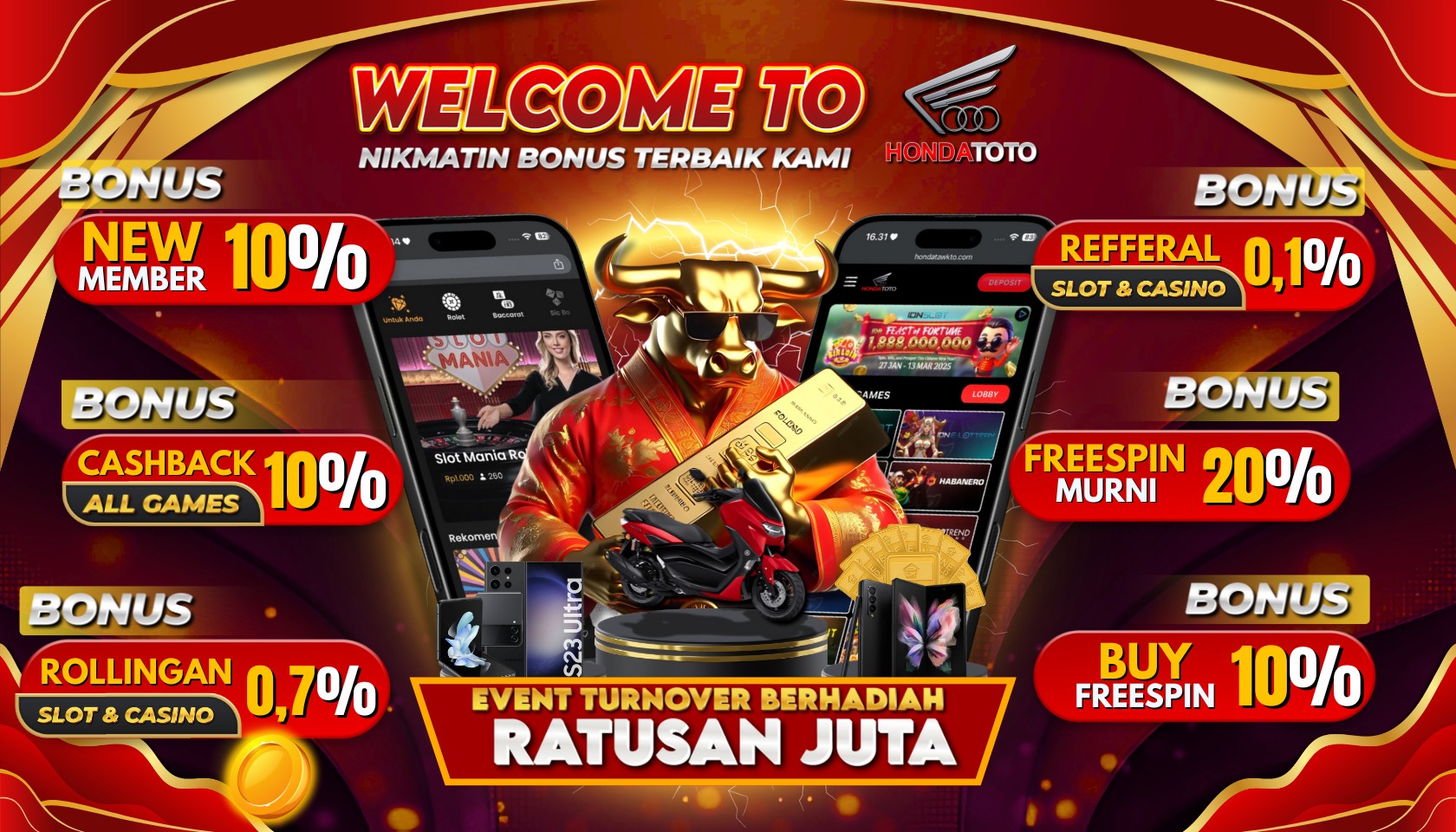 Bermain toto online mempunyai beberapa keuntungan. Kami sebagai situs togel terpercaya sediakan service untuk Anda nikmati permainan togel online dengan cara lebih ringkas dan gampang. Anda perlu gabung dengan kami dan dapat nikmati semua kemudahan yang kami siapkan. Situs toto terpercaya yang kami siapkan, sediakan banyak macam toto togel yang terpercaya seperti HondaToto. Dengan togel online terpercaya tersebut, Anda dapat rasakan banyak peluang memenangi hadiah besar di tengah-tengah serunya bermain togel online.